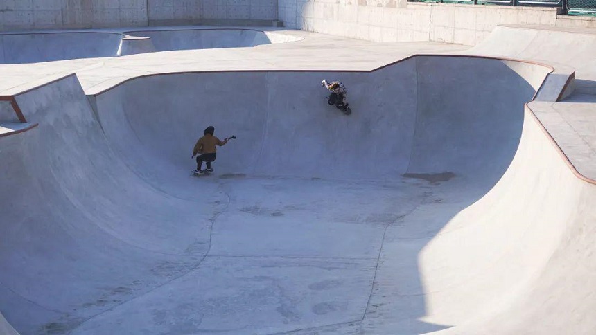 遠處的碗池深度均勻,但是邊緣向內延伸形成了一個Spine(梁)以及一個圓臺,想在這個場地內發揮可沒有那么容易。